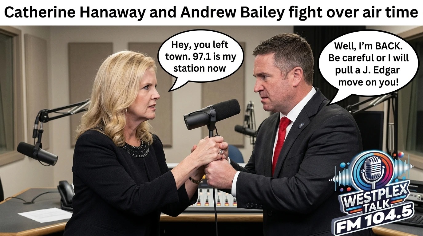 Catherine Hanaway took over Andrew’s air time on 97.1. But then Andrew returned to The Show Me State. That’s when the air wars began. Who do you think will win? John Combest is hoping they’ll be signed to the WWE for a cage match.